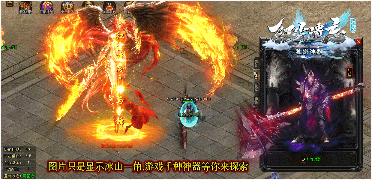 ★红尘遗忘★:上线送爆率-送切割-自动挂机-自动回收-一切靠打,无合成,看脸时代,你和土豪的差距只是【时间】